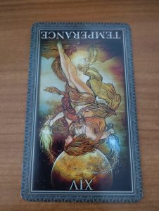 La templanza es el arcano catorce del tarot; este arcano en esta posición hace referencia al desequilibrio,la carencia de visión a largo plazo, a los conflictos que se presentan en la vida y que no hemos encontrado la serenidad y la mesura para resolverlos.
